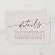 Minimal Simple Elegant Off-White Ivory Mariage Détails insert cards. Ce mariage moderne ou détails de douche nuptiale pour plus d'informations ou de conception d'itinéraire est simple et élégant avec un chic arrière - plan couleur solide et signature de script de police de calligraphie. Montré dans la nouvelle Colorway. Il dispose également d'un simple monogramme sur le côté arrière. La collection Mariage Minimal Solid est sûre de rendre votre mariage mémorable et beau ! Pour en savoir plus, recherchez les collections mariages 2022 de Chic Paperie pour voir toutes les tendances design et couleurs mariages de cette année.