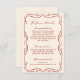 Célébrez en style avec notre carte de détails mariage excentrique et fantaisiste! Cette carte d'enceinte présente un magnifique cadre dessiné à la main d'inspiration vintage, accompagné d'une police décontractée manuscrite qui saisit parfaitement l'excitation et la joie de l'occasion. Les cartes viennent dans une palette de couleurs délicieuse de terre cuite et crème, évoquant des sentiments de nature, de chaleur et de bonheur. Ces couleurs complètent parfaitement le design ludique et renforcent encore l'ambiance festive de l'occasion.