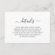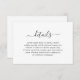 Carte mariage simple avec un design épuré et minimaliste, avec une touche élégante avec "détails" en script avec des swashes. Une carte mariage moderne en noir et blanc qui se coordonne parfaitement avec n'importe quel style de mariage. Utilisez ces cartes d'enclos pour indiquer l'itinéraire et tout autre détail mariage important que vos invités pourraient avoir besoin de connaître, comme l'hébergement à l'hôtel, le stationnement, les informations sur la navette, etc.