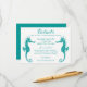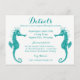Ajoutez une touche d'amusement à vos invitations de mariage ou de fête avec cette charmante carte de détails de mariage / fête à l'hippocampe de couleur turquoise et blanc. Cette carte de détails mignonne peut être personnalisée pour de nombreux événements * mariages sur la plage et en été * entreprises * événements commerciaux * fêtes * collectes de fonds / organisations caritatives * fêtes de jardin et thés