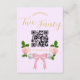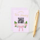 Elle est à deux ! Collection de 2e anniversaire avec un arc rose dainty au milieu d'une couronne de roses. Typographie en or contre un arrière - plan pastel violet