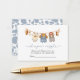 The front of the card features a sweet watercolor illustration of a clothesline with baby cowboy essentials — tiny boots, a hat, overalls, a vest, and a bandana — hanging across the top. Elegant calligraphy reads “diaper raffle” in soft blue script, with space below for the guest’s name.