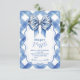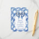 Ajoutez une touche réfléchie et amusante à votre baby shower avec cette jolie carte de fermeture à rabat pour bébé Bleu Bow! Conçue pour correspondre à une douche de bébé classique, cette carte présente un joli ruban bleu et une palette de couleurs bleu et blanc doux. Invités Invitations à apporter un pack de couches pour une chance de gagner un prix - un moyen facile d'aider les parents à être stock sur l'essentiel tout en ajoutant une touche ludique à la célébration. Imprimée sur un carton de haute qualité, cette carte de boîtier s'intègre parfaitement aux invitations et encourage les invités à participer à la tombola. C’est un ajout pratique mais adorable qui apporte une excitation supplémentaire à votre baby shower tout en assurant que tout le monde se joigne au plaisir!