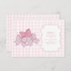 Ajoutez une touche amusante et pratique à votre baby shower grâce à notre carte de fermeture à couches Baby shower rose Bow. Doté d'une charmante proue dessinée à la main dans des teintes roses douces, cette carte d'enceinte invitation vos invités à participer à une tombola de couche, alliant excitation et utilité pour la future maman. Conçu avec une attention minutieuse aux détails, notre carte de boîtier est imprimée sur un carton de haute qualité, assurant une durabilité et une belle présentation. Le design élégant s'ajoute à tous les thèmes baby showers, du classique au contemporain, ce qui en fait un complément sans faille à vos invitations. Personnalisez la carte avec les détails de votre événement et les instructions de tombola, encourageant les invités à apporter un paquet de couches pour une chance de gagner un prix spécial. Cette activité pratique et engageante non seulement ajoute du plaisir à votre célébration, mais aide également les nouveaux parents à stock sur les fournitures essentielles. Commandez dès maintenant pour améliorer vos invitations de douche bébé avec la carte de Baby shower à couches Raffle Rose Bow, assurant une expérience mémorable et délicieuse pour tous vos invités.
