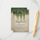 Cartes de direction de mariage féerique avec un fond de mur en pierre rustique, une vigne de lierre verte avec des lumières scintillantes et un modèle de texte de direction de mariage.
