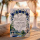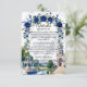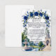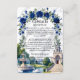 Définissez le ton de votre mariage formel dans une propriété avec cette élégante carte incluse, qui présente une illustration architecturale romantique et des florales aquarelles luxuriantes. Ce design présente une composition sophistiquée idéale pour les mariages de luxe traditionnels. Le fond utilise une texture de faux marbre blanc imprimé (effet numérique) pour fournir une base propre et haut de gamme. L'œuvre d'art met en valeur un grand salon de style néoclassique avec un toit en dôme et des escaliers en courbe, ancré par une fontaine à eau en pierre étagée et deux cygnes blancs gracieux glissant sur un lac. La scène est encadrée par une arche florale aquarelle de roses bleues royales et de verdure émeraude. Il s'agit d'une image imprimée plate avec un effet de faux marbre, et non de la pierre réelle en relief ou du papier text