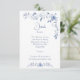 Carte D'accompagnement Dusty bleu floral vert ruban élégant mariage