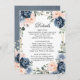 Carte de détails de mariage géométrique florale bleu poussiéreux présentant des bouquets élégants de bleu poussiéreux / marine, blanc, rose blush, rose pêche et feuilles d'eucalyptus vert sauge et cadre géométrique neutre à paillettes élégant. Veuillez me contacter pour toute aide de personnalisation ou si vous avez besoin d'un autre produit avec ce design.