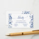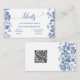 This refined enclosure card features classic blue toile botanical illustrations paired with a clean minimalist layout. The front directs guests to your wedding website for important information such as reception details, accommodations, transportation, and registry. The back includes a scannable QR code, allowing guests to quickly access your wedding website from their phone.