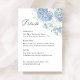 This Dusty Blue & White floral wedding details card features soft watercolor hydrangea artwork and a clean, modern layout designed to share important wedding information with clarity and elegance.