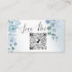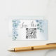 Elégant rsvp en ligne avec code qr personnalisé, carte de boîtier mariage avec feuilles eucalyptus, lettrage manuel et lavage à l'aquarelle. Ce design délicat a une aquarelle verdure et des feuillages dans les tons bleu poussiéreux gris et vert. Scan Me est écrit dans une belle calligraphie et le modèle est configuré pour vous pour ajouter votre propre code qr et un message personnalisé au dos. Un design naturel, rustique et non floral qui s'adapte à une variété de thèmes allant du jardin classique au boho bio et au minimalisme moderne. Veuillez naviguer dans mon magasin, dans la collection poussiéreuse d'eucalyptus, pour coordonner les invitations, les cartes de boîtier et les accessoires d'expédition.