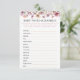 Ajoutez un peu de plaisir ludique à votre baby shower avec cette carte de jeu Dusty Pink Fleur sauvage Baby Word Scramble ! Doté de fleurs moelleuses et d'une végétation sauge dans un style d'aquarelle charmant, cette activité d'inspiration boho met les clients au défi de démêler les mots liés au bébé. Un brise-glace léger qui s'intègre parfaitement dans les baby showers à thème jardin, rustique ou fleuri. Points forts ✨ : ・ Carte de jeu pour bébé avec mots changeants ・ Aquarelle design fleur sauvage en rose poussiéreux ・ Idéal pour les douches pour bébés, les événements boho ou les thèmes printaniers ・ Coordonnées avec Fleur sauvage Dusty rose et décoration de fête