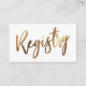 Faites en sorte que votre tribu se souvienne facilement de votre registre de cadeaux avec ces cartes de boîtier audacieuses et simples. J'ai utilisé une police de script d'écriture manuscrite décontractée pour créer un "Registre" de lecture graphique pour le devant. L'image a été embellie avec un effet d'or lisse et faux métallique. Vos informations peuvent être mises à jour à l'aide des champs de modèle situés à l'arrière. L'arrière - plan peut être changé en n'importe quelle couleur. // 105 //