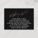 Ces inserts de carte simples et distinctifs ont été conçus pour correspondre à d'autres éléments dans une suite événementielle en pleine croissance qui comprend une police d'écriture décontractée moderne sur un arrière - plan simple que vous pouvez changer à n'importe quelle couleur que vous voulez. Sur le côté avant vous lisez "Wishing Well" dans le type présenté; sur le dos, j'ai placé une correspondance "Love and Thanks". Ces graphismes ont été ornés d'une finale rose en or immétallique festive. Le type modifiable est rendu dans une police serif entièrement casquette. Mon message porte-monnaie dit : "La chose la plus importante est de vous avoir avec nous lors de notre journée spéciale. Aucun cadeau n'est nécessaire ou attendu, mais on nous a demandé ce dont nous avions besoin ou ce que nous voulions. Si vous voulez nous donner quelque chose, un peu d'argent à dépenser pour notre lune de miel serait très apprécié." N'hésitez pas à utiliser les champs du modèle et à modifier cette copie avec votre propre message personnel pour faire de ces cartes votre propre carte. // 151 //