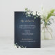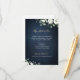 Ecriture or moderne et aquarelle blanc eucalyptus fleuris vert sur bleu marine foncé arrière - plan, élégant et élégant, idéal pour mariage rustique verdoyant, mariage botanique de jardin, boho mariage fleurie en été et en hiver. Voir toutes les pièces correspondantes dans la collection.