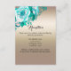 Élevez votre papeterie de mariage avec ces cartes d'invitation de réception exquises, mettant en vedette un design captivant de roses sarcelle en pleine floraison, leurs tons vibrants contrastant magnifiquement sur un fond d'or métallisé riche. Nos cartes de réception de mariage 'Botanical Elegance Teal Roses' sont parfaites pour fournir des détails clés sur votre réception, tels que l'adresse du lieu, les horaires, les suggestions de tenue ou même un menu de repas spécial. Le design élégant, reprenant le même bouquet captivant que les invitations (veuillez consulter la collection complète pour ces dernières), assure une apparence cohérente et sophistiquée pour l'ensemble de votre suite de mariage. Les cartes elles-mêmes offrent un espace suffisant pour transmettre toutes les informations essentielles dont vos invités ont besoin pour célébrer votre jour spécial avec style.