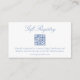 Ajoutez une touche moderne à votre baby shower grâce à cette Elégante carte de Baby shower Floral Bleu QR Greffe Enclôture Card. Cette élégante carte d'enceinte présente un dessin à trait bleu poussiéreux et comprend un code QR lié au registre des bébés, ce qui facilite la recherche du cadeau parfait pour les clients. Customisez avec vos propres détails pour une touche personnalisée. Entrez l'outil de conception Zazzle pour une personnalisation supplémentaire.