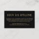 Une carte élégante en noir et or pour offrir une option en ligne aux invités qui ne peuvent pas assister physiquement à votre fête de remise de diplômes en personne en raison de la distance ou d'autres circonstances. "Rejoignez-nous en ligne" et les détails virtuels en ligne sont dans la typographie moderne de l'or léger.
