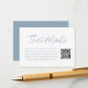 Elégante calligraphie de script bleu poussiéreux connectant carte de boîtier de détails cardiaques avec code QR pour votre mariage.