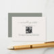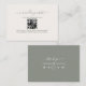 Carte boîtier élégante avec code QR pour plus d'informations, détails et réponse en ligne sur le script couleur verte sage et arrière - plan. Utilisez l'outil Personnaliser pour ajouter vos informations. Les articles correspondants peuvent être trouvés dans ma collection Boho Sage Green.