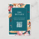 Cartes mariages de automne modernes avec élégantes touches florales boho automne fleurs dahlia et feuilles botaniques d'automne, design typographique minimaliste sur arrière - plan turquoise. Ajoutez votre propre code QR personnalisé avec l'URL personnalisée du site de mariage.