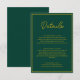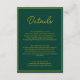 Cette élégante carte d'enceinte verte et or mariage détails est parfaite pour un mariage moderne. le design simple comprend élégante calligraphie or sur un arrière - plan vert.