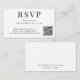 Carte de boîtier RSVP classique en noir et blanc pour mariage avec "RSVP" dans une élégante typographie serif. Entrez l'adresse de votre site Web mariage pour créer un code QR que vos invités peuvent scanner en ligne vers RSVP et obtenir des détails supplémentaires sur le mariage, tels que les logements et les itinéraires.