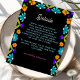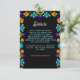 Partagez des informations importantes sur le mariage avec cette Elégante Fiesta Mariage Détails Carte de boîtier. Décoré de floraux d'inspiration mexicaine aux tons audacieux de rouge, rose, jaune et orange, le design apporte un charme festif à votre célébration tout en conservant un look raffiné et sophistiqué. Une typographie gracieuse et un agencement propre vous garantissent des détails tels que l'hébergement, le mode d'emploi ou le code vestimentaire clairs et joliment présentés. Parfait pour les couples qui souhaitent mêler une ambiance culturelle joyeuse à une élégance intemporelle dans chaque élément de leur suite mariage.