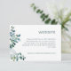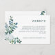 Cette carte de site web botanique classée mariage dispose d'un bouquet contemporain de feuilles d'eucalyptus complété par des fleurs blanches délicates et est facilement personnalisable avec vos instructions de site web. Le dos de la carte comporte un code QR personnalisable qui envoie vos invités directement sur votre site mariage.