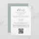 Elégant eucalyptus verdure mariage détails carte boîtier avec site web mariage rsvp et QR code modèle. Avec de belles aquarelles feuilles de feuillage d'eucalyptus et un délicat jeu de couleurs vertes. Cette carte de détails est un joli accompagnement à votre papeterie de faire-part de mariage. ce design comprend un sobre et élégant détails du site, information calligraphie eucalyptus info, adresse web moderne aquarelle, rsvp en ligne theknot.com feuillage, rsvp code QR minimaliste vert, vert botanique élégant et moderne, avec l'aquarelle verte feuillage adresse web, web internet réponse invité, un rsvp en ligne sur site, élégant aquarelle site moderne
