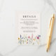 Améliorez l'allure de votre mariage de printemps ou d'été avec notre Elegant Fleur sauvage Meadow Cream Mariage Details Card, oré de fleurs sauvages d'aquarelle lunaire et feuillage luxuriant dans une palette de rose, jaune, violet, bleu et vert. En complément de notre faire-part de mariage, cet élégant ajout assure à chaque client un séjour informé sur les détails mariages essentiels. Faisant rayonner l'essence de la beauté de la nature et de la sophistication moderne, notre Elegant Fleur sauvage Cream Mariage Details Card est le choix parfait pour les couples à la recherche d'un mélange harmonieux de tradition et d'innovation lors de leur journée spéciale.