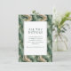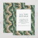 This elegant wedding enclosure card features a sophisticated marbled background with swirling patterns in shades of green, beige, and cream, creating an organic and fluid appearance. The design is framed by a clean white border that houses centered text in a modern sans-serif font, emphasizing clarity and elegance. Perfect for formal occasions, the card combines artistic flair with functional communication, setting the tone for anticipation and excitement as guests are directed to a website for more details. Its abstract yet structured style makes it ideal for those seeking a contemporary touch for their wedding stationery.
