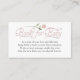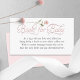 La carte Pink Fleur sauvage Baby shower est un boîtier de charme conçu pour ajouter une touche d'élégance à vos invitations pour bébé douche. Ces tomboles de couches, des livres pour bébé et des cartes de douche d'affichage présentent une belle aquarelle design fleur sauvage, dressée contre un arrière - plan rose doux qui respire une ambiance douce et accueillante. Améliorée avec une calligraphie élégante, chaque carte allie parfaitement beauté artistique et fonctionnalité, encourageant les invités à participer à la tombola de couche. Conçues pour les parents en attente qui apprécient les détails les plus fins, ces cartes sont une façon délicieuse de s'assurer que votre baby shower est mémorable et bien fourni avec l'essentiel.