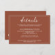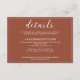 Ce Détails du Mariage Terracortta est créé pour votre mariage rustique. Il a été décoré avec un élégant script de calligraphie et une bordure incluant vos noms (mariée et mariée) au dos de la carte.