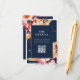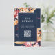 Cartes mariages de automne modernes avec élégantes touches florales boho automne de fleurs dahlia et feuilles botaniques automne, design typographique minimaliste sur arrière - plan bleu marine. Ajoutez votre propre code QR personnalisé avec l'URL personnalisée du site de mariage.