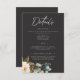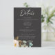Notre carte d'enceinte de détails mariage noir au charbon de bois avec une pivoine blanche frappante, centre jaune doux, verdure luxuriante, et de délicates poupées en coton est un chef-d'oeuvre moderne. Ajoutez votre photo préférée pour préparer la scène de votre faire-part. Le texte blanc immaculé ajoute une touche d'élégance, tandis que l'arrière - plan sombre crée un décor spectaculaire pour votre journée spéciale. Ajoutez votre photo préférée Ce design est un mélange époustouflant d'élégance moderne et de romantisme intemporel. Créé par Simply Farmhouse Press.