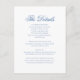 Ajoutez une touche de sophistication à votre papeterie mariage avec notre Elegant Blue Monogram Crest Formal Script Mariage Enclôture Card. Doté d'une crête de monogramme bleu raffinée, cette carte d'enceinte complète élégamment votre invitation principale, offrant de l'espace pour des détails supplémentaires tels que les directions, les informations d'hébergement ou des instructions spéciales pour vos invités.