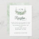 Ces cartes d'enclos de réception sont ornées d'une couronne d'eucalyptus et encadrent les élégants monogrammes design de la mariée et du marié, avec un arrière - plan blanc simple. Le dos a une sauge vert aquarelle texture arrière - plan. Trouvez des produits correspondants pour compléter votre suite d'invitations, dans la collection.