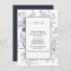 Carte D'accompagnement Elegant Navy Blue Floral Line Art Mariage Détails