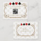 Elégant boîtier Gold White Art Deco Card avec code QR pour plus d'informations, détails et réponse en ligne. Ce design présente un style art déco vintage, un cadre en faux or hollywoodien des années 20, jouant aux cartes avec des bords dorés, sur un arrière - plan motif Art déco blanc doré. Sur le dos le même motif et les initiales entre les combinaisons de cartes à jouer. Utilisez l'outil Personnaliser pour ajouter vos informations. Pour plus, visitez s'il vous plaît, ma White Gold Vegas Casino Collection.