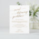 Cette élégante carte d'enclos mariage en or à lignes directrices pour la distance sociale est parfaite pour un mariage de automne. Le design neutre présente une carte minimaliste décorée avec une typographie romantique et fantaisiste de feuille d'or. Personnalisez cette carte de boîtier d'invitation avec vos noms et un court message. Remarque : Ce design ne comporte pas de véritable feuille d'or. C'est un graphisme de haute qualité fait pour ressembler à du papier doré.