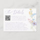 Provide guests with helpful wedding information with this elegant pastel wildflower garden wedding details card featuring delicate watercolor wildflowers in soft shades of purple, pink, yellow, blue, and white with light greenery. The graceful botanical design adds a romantic touch while lavender lettering presents your wedding details in a clean and organized layout. A convenient QR code allows guests to quickly RSVP, access your wedding website, and view additional information such as travel directions and accommodations. Perfect for spring and summer weddings, garden ceremonies, and outdoor weddings, this wildflower details card coordinates beautifully with the matching invitation suite and offers a modern way to share important wedding information with your guests.