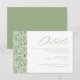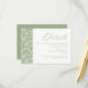 Featuring a soft ivory background with a refined sage green border and delicate leafy accents, this insert perfectly matches your invitation suite. The coordinated botanical design and graceful typography create a clean, romantic look that complements garden, classic, and modern weddings. Use this card to display important information such as reception details, accommodations, website links, directions, or schedule notes.