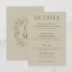Carte D'accompagnement Elegant Sage Green Crest Monogram Wedding Details