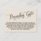 Ces élégantes cartes d'insertion ont été conçues pour correspondre à d'autres éléments d'une suite événementielle en pleine croissance qui comprend un script tourbillon élaboré sur un arrière - plan solide que vous pouvez changer à n'importe quelle couleur que vous voulez. Sur le côté avant vous lisez "Concernant les cadeaux" dans le script ; sur le dos, j'ai placé un graphique magnifiquement rendu des mots "Amour et Merci". Tout type modifiable est rendu dans une police sans-serif entièrement casquette. Il suffit d'utiliser les champs modèles et de remplacer mon texte de remplissage par vos propres détails personnels pour faire de ces cartes votre propre. // 98 //
