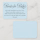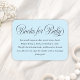 This stylish baby shower enclosure card features a light blue background, elegant dark grey calligraphy script, and typography. Simply edit the template with your details and choose paper options. Coordinating items are available in our store or the design collection.