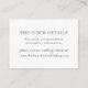 Cette simple et minimaliste carte d'information du site web mariage comporte une police serif classique agrémentée d'une touche de script calligraphique écrit à la main et placée contre un arrière - plan blanc et propre. Personnalisez cette fiche détaillée avec les informations de votre site Web mariage et tout autre détail à l'aide du modèle texte. Créé dans le cadre de ma collection de mariages bretons. N'oubliez pas de parcourir les autres éléments de cet ensemble pour créer un look sophistiqué et coordonné pour votre célébration mariage et les événements environnants. Pour ajouter du texte ou modifier le positionnement, modifier les polices ou les couleurs de police ou ajouter des graphiques, cliquez sur "Personnaliser" et "Modifier à l'aide de l'outil de conception". Si vous avez besoin d'aide supplémentaire pour ajuster ce modèle, profitez du service gratuit de Zazzle à l'adresse https://www.zazzle.com/live ou contactez-moi via le système de messagerie de Zazzle. S'il vous plaît noter, je crée les designs, mais toute l'impression et l'expédition est faite par Zazzle à ses installations de production, donc s'il y a un problème avec votre commande, veuillez contacter le support à la clientèle au 1-888-892-9953 ou https://www.zazzle.com/about/ask.