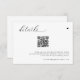 Cartes de détails mariage : Ces cartes de détails de mariage simples, modernes et élégantes présentent un design propre avec un code QR, offrant aux clients un moyen pratique d'accéder à votre site Web mariage. Un message court et réfléchi invitations invités à scanner le code pour tous les détails importants de votre grand jour. Parfaites pour les couples qui veulent combiner style et fonctionnalité, ces cartes ajoutent une touche personnalisée et élégante à votre papeterie mariage.