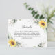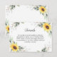 Carte D'accompagnement Elégant tournesol vert Floral Détails Mariage