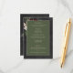 Introducing our enchanting winter wedding details enclosure card, where timeless elegance meets the beauty of the season. The rich black background, softly distressed with white accents, sets a captivating tone for your special day. In the dark sage green text area, your wedding details stand out, surrounded by a delicate cream frame that adds a touch of refinement. Embrace the spirit of winter with a breathtaking frame of lush greenery, featuring holly adorned with rich red berries, mistletoe with its delicate white berries, and the timeless allure of green pine. Created by Simply Farmhouse Press.